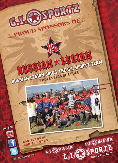 Esta mañana hemos recibido una nota de Steve Rabackoff de GI Deportes nos informa de que el ruso Legión sería disparar bolas de pintura GI Deportes exclusivamente para la temporada 2011 de paintball profesional.